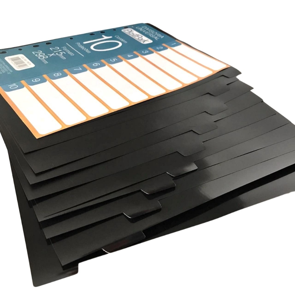 Divisória p/ Fichário Escolar 4 Argolas Universitário c/ 10 projeções A4 Caderno Argolado