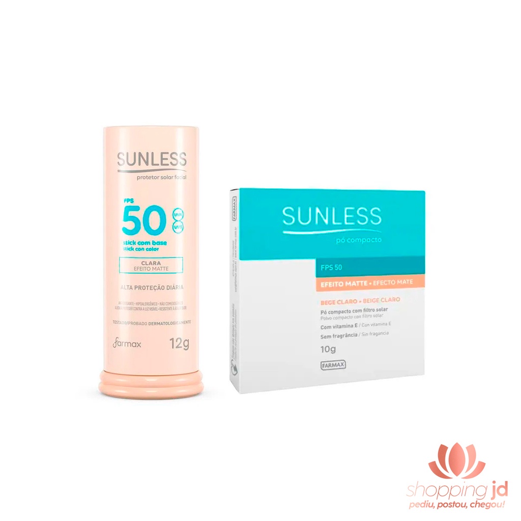 Farmax Kit 2un - 1un Base Stick + 1un Pó Compacto Linha Sunless - Bege Claro