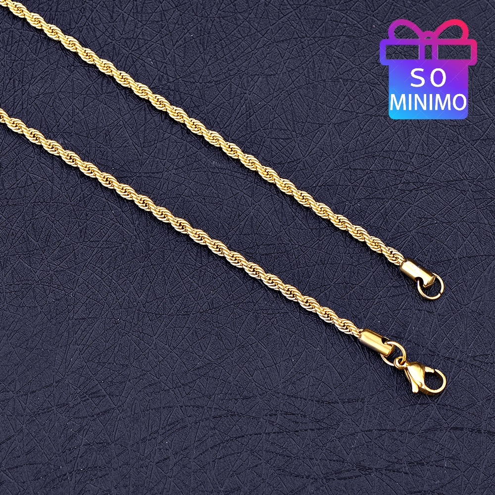 Corrente de corda trançada de aço inoxidável 2.4 mm, joia unissex de estilo rock