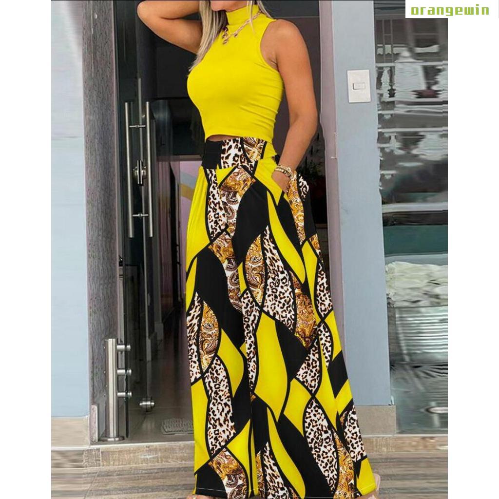 Conjunto de Calças Femininas Verão Colete Corte Primavera Duas Peças Estampado Elegante Moda Terno de Perna Longa para M