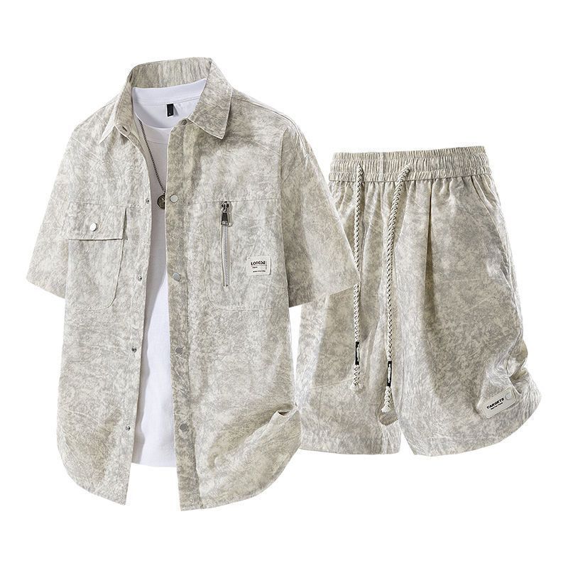 Bonito Masculino Verão Casual Solto Na Moda Camisa De Manga Curta Shorts Esportivos Conjunto De Duas Peças Terno Elegant