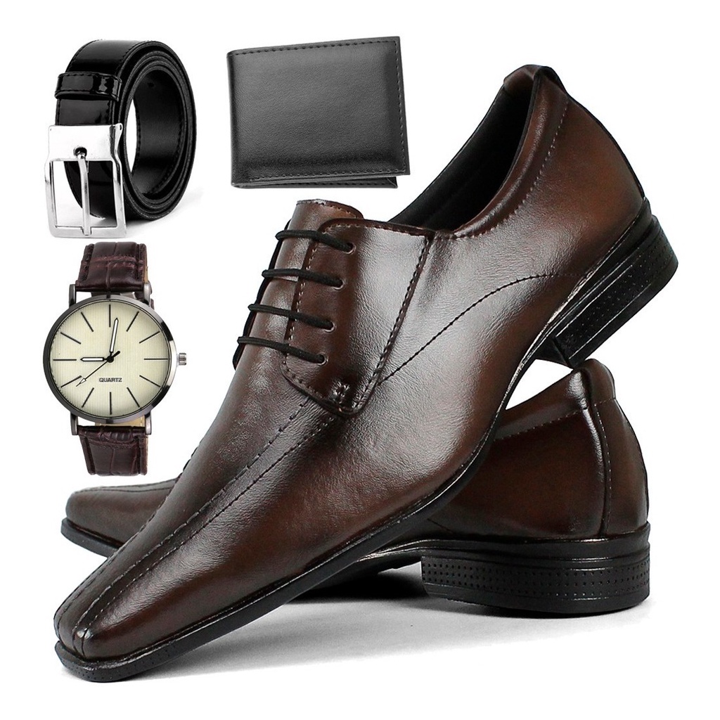 Sapato Social Masculino com Relógio, Cinto e Carteira Touroboots