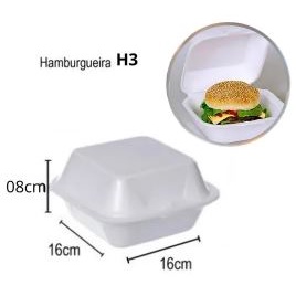 Hamburgueira H3 Isopor Para Hambuguer Lanches Porções 100 Un
