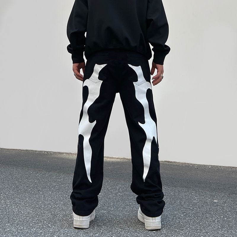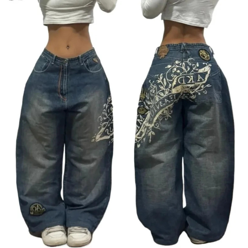 2024 Nova Tendência Americana Retro Hip-hop Bordado Padrão Jeans Baggy Para Homens E Mulheres Y2K Harajuku Gothic Wide P
