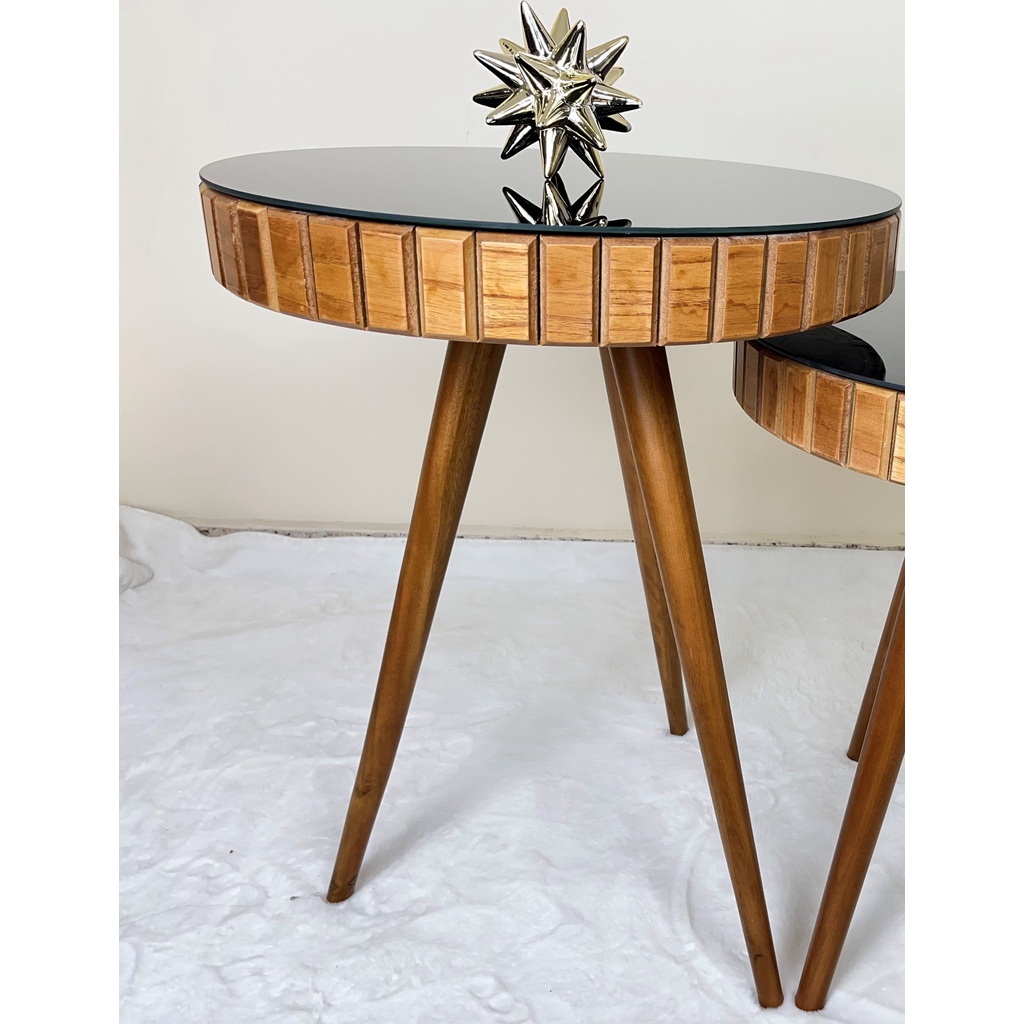Kit Trio Jogo de Mesinhas Lateral Redondas Sala Pé Palito Retro