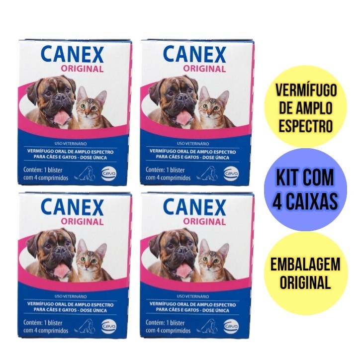 Vermífugo Canex Original Gato Cachorro Kit C/ 16 - 4 Cx Comprimidos Anti Vermes Parasitas Dose Unica