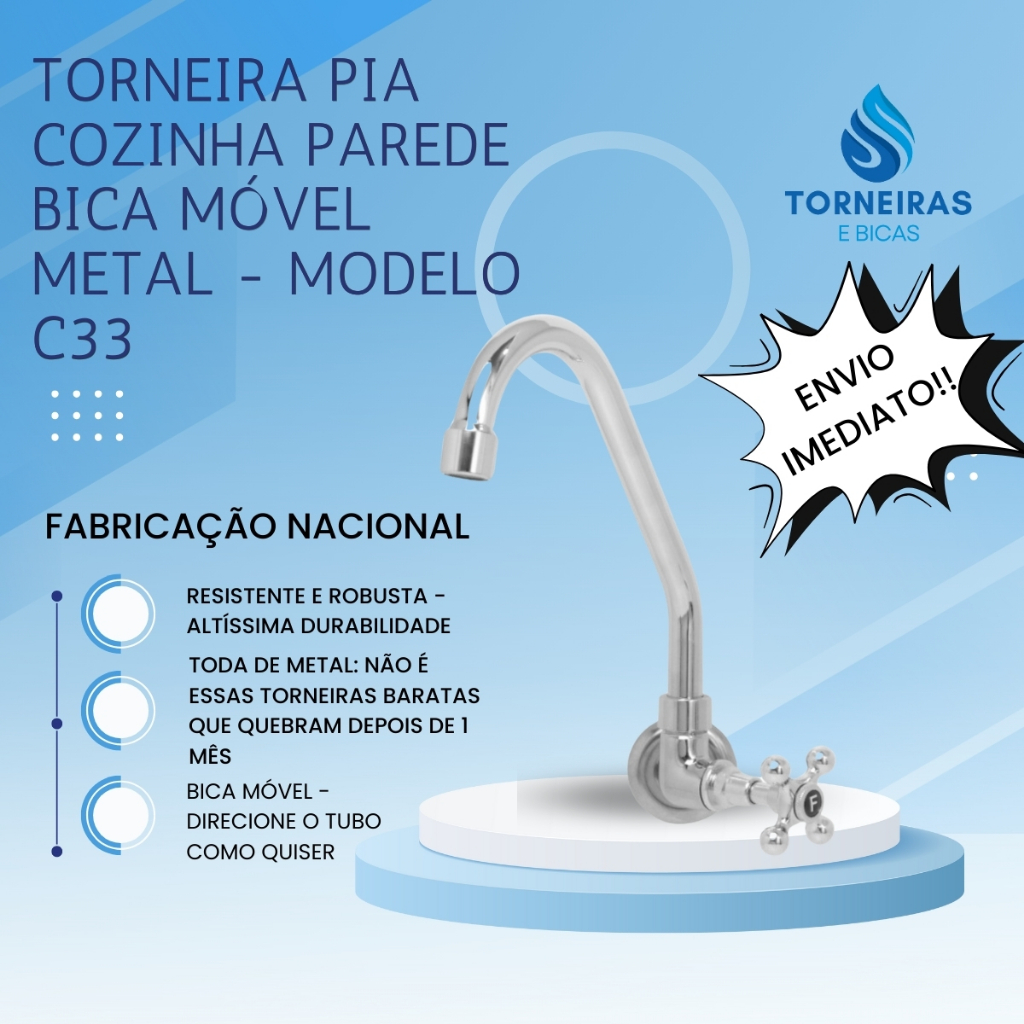 Torneira Para Pia Cozinha Parede 100% Metal Bica Móvel C50 1/4 Volta