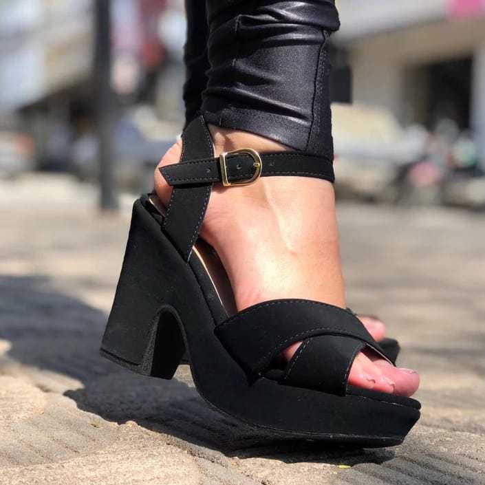 Sandália Feminina Salto Alto Meia Pata Plataforma Confortável Via Angel 7101