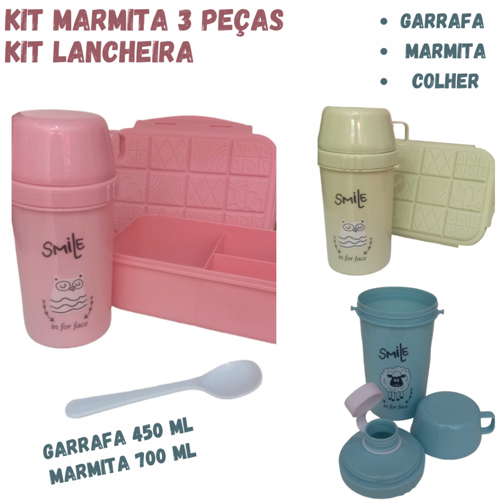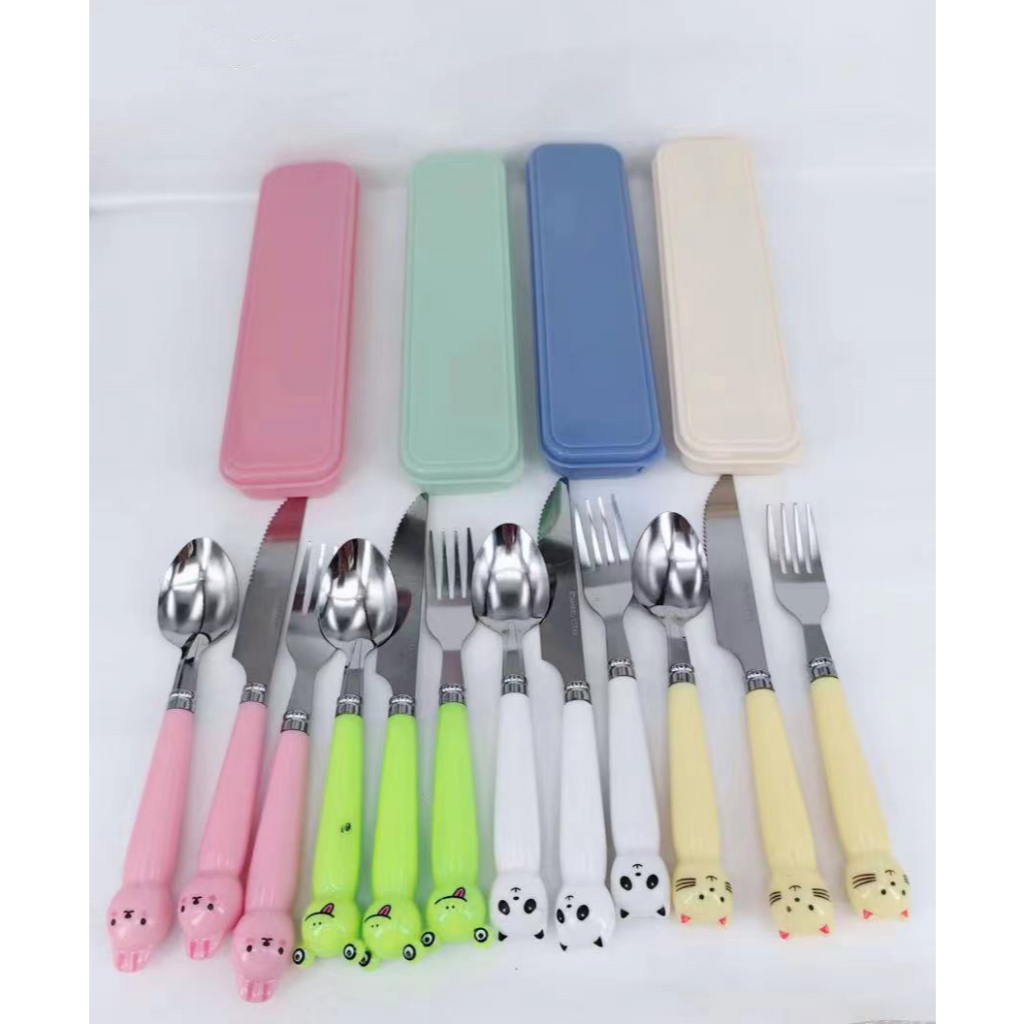 Talher Infantil e Adulto kit 4pçs Bichos sortidos p/Viagem Marmita Portátil Durável Com Estojo kit jogo de Talheres Infantil kids Colher Garfo Faca com 3 Peças em inox