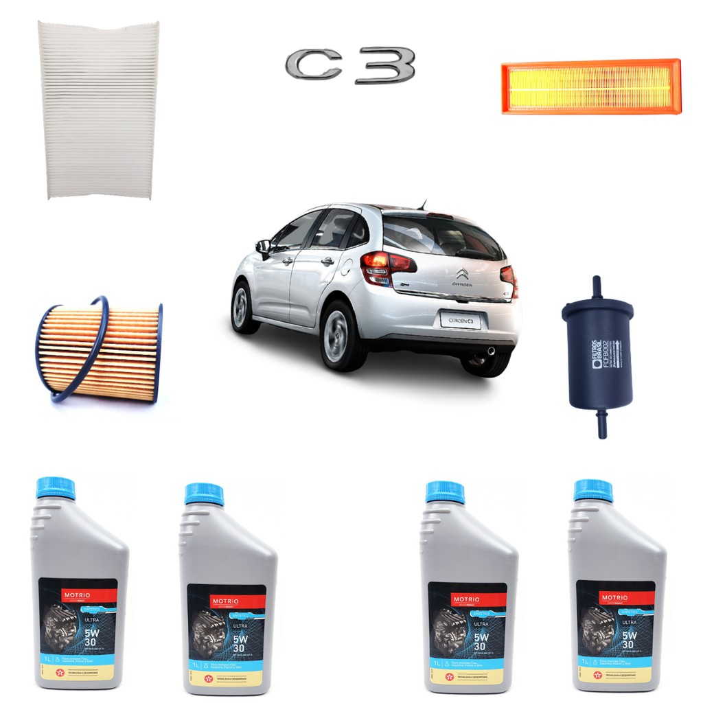 Kit troca oleo C3 1.5 2012 2013 2014 2015 2016 2017 2018 2019 completa com 4 filtros: Óleo Ar Combustível Ar condiciona