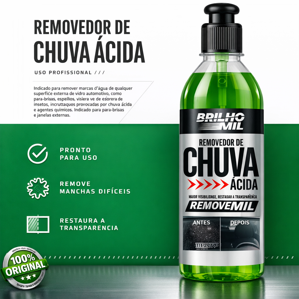 Removedor de Chuva Ácida para Vidros Automotivos | Elimina Manchas Difíceis e Restaura Transparência