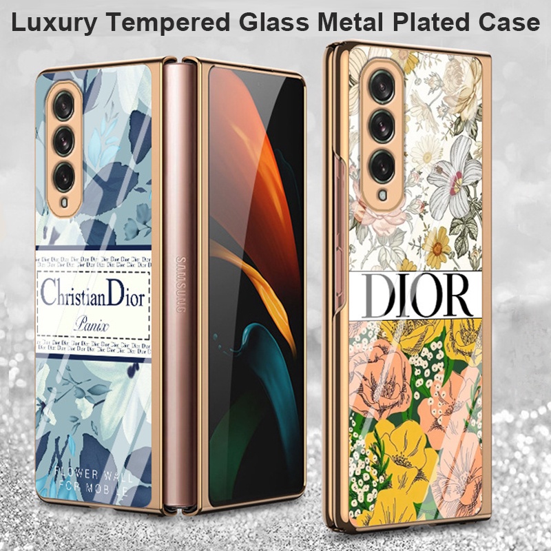 Capa De Vidro Temperado De Luxo Para Samsung Galaxy Z Fold4 Fold3 5G Metálica Folheada Fold 4 3 2 Caixa