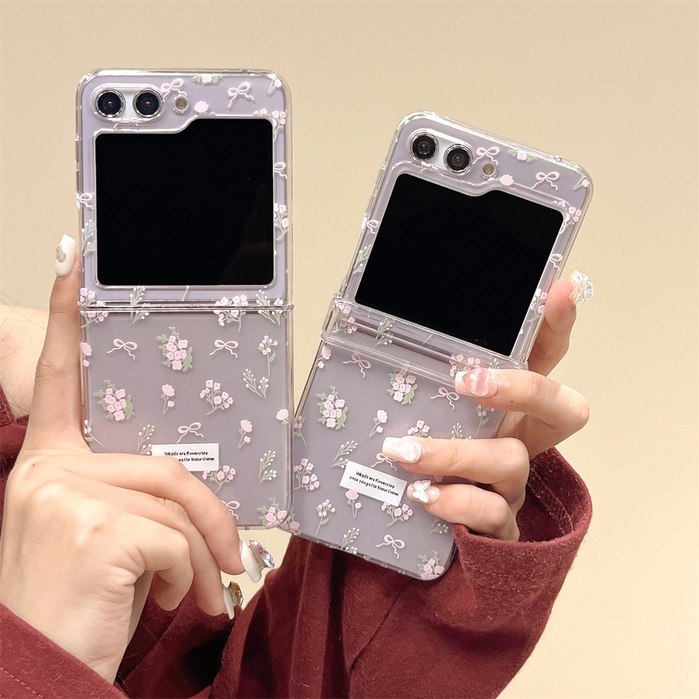 Para Samsung Galaxy Z Flip 5 4 Caixa Padrão De Flor Rosa À Prova De Choque Capa Dura Transparente Dobrável 3