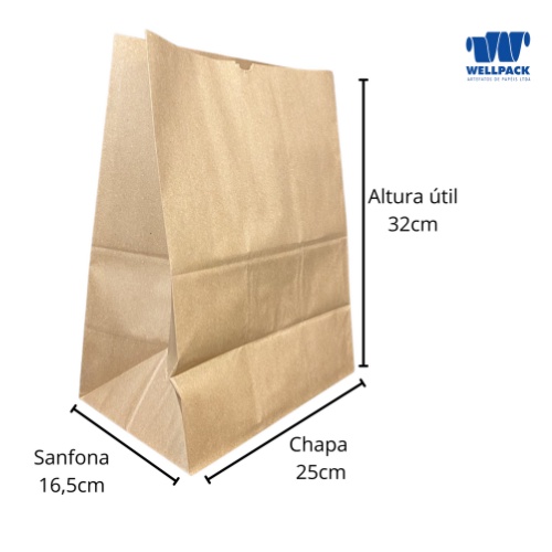 Saco Kraft Embalagem de Papel Craft Para Delivery com 50 und Escolha o Seu Tamanho