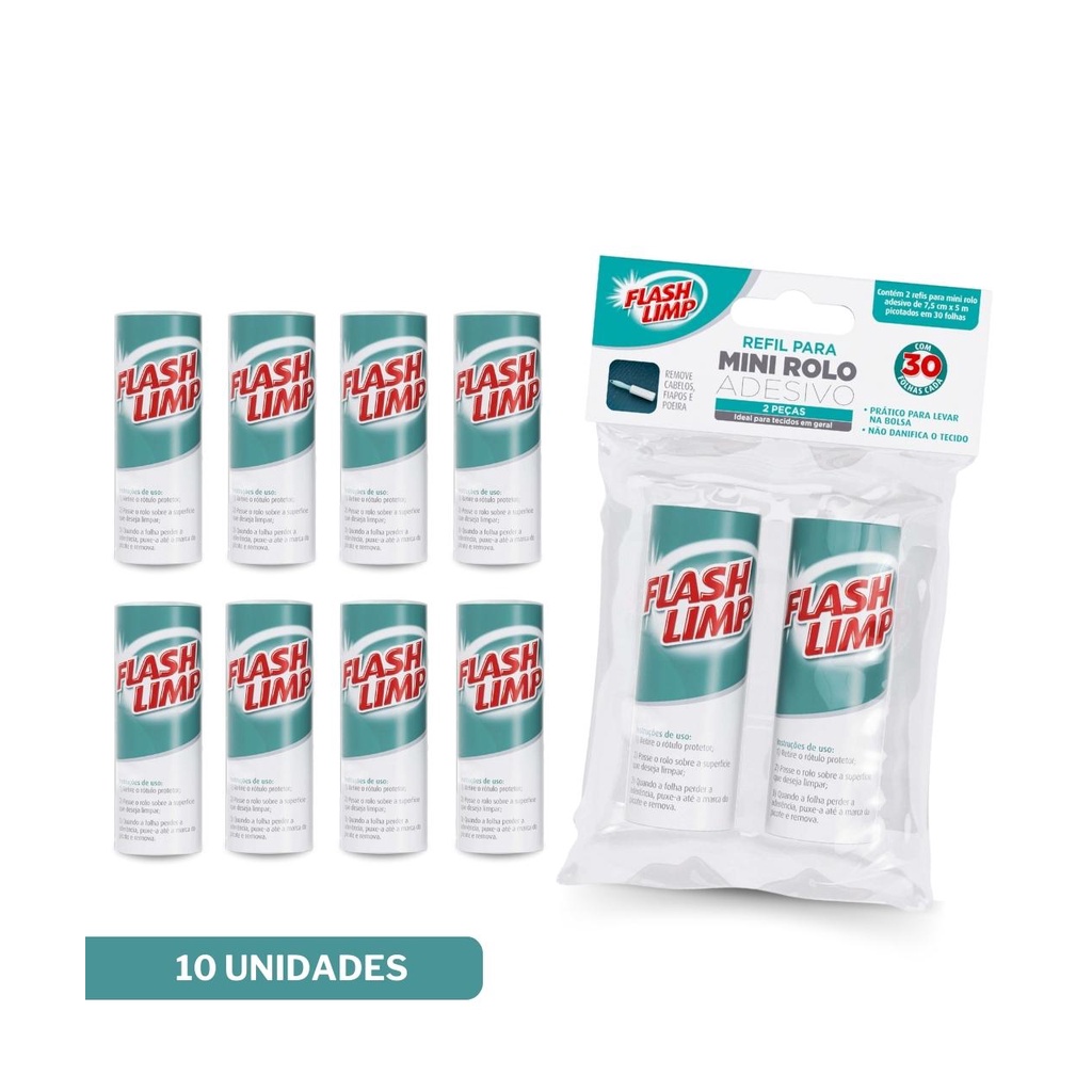 Kit Com 10 Refis Para Mini Rolo Adesivo Tira Pelos Flash Limp