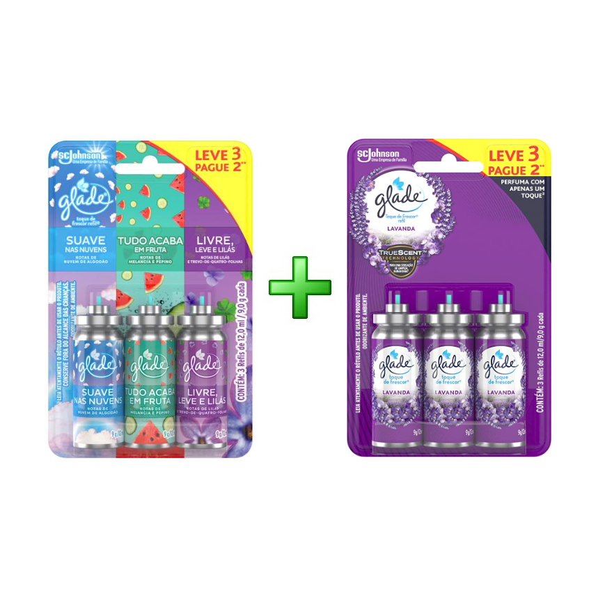 Desodorizador Aromatizador de Ambiente Glade 03 Refis Suave nas Nuvens + 03 Refis Lavanda