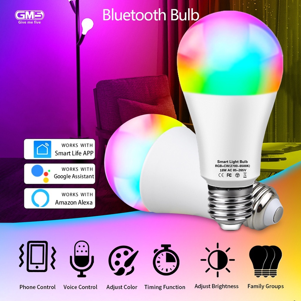 O trabalho esperto da lâmpada do rgb do diodo emissor de luz 9w wifi com alexa/google casa 85-265v rgb + branco pode ser escurecido temporizador função cor bulbo
