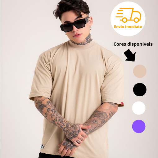 CAMISETA OVERSIZED Basic Streetwear gola alta masculina