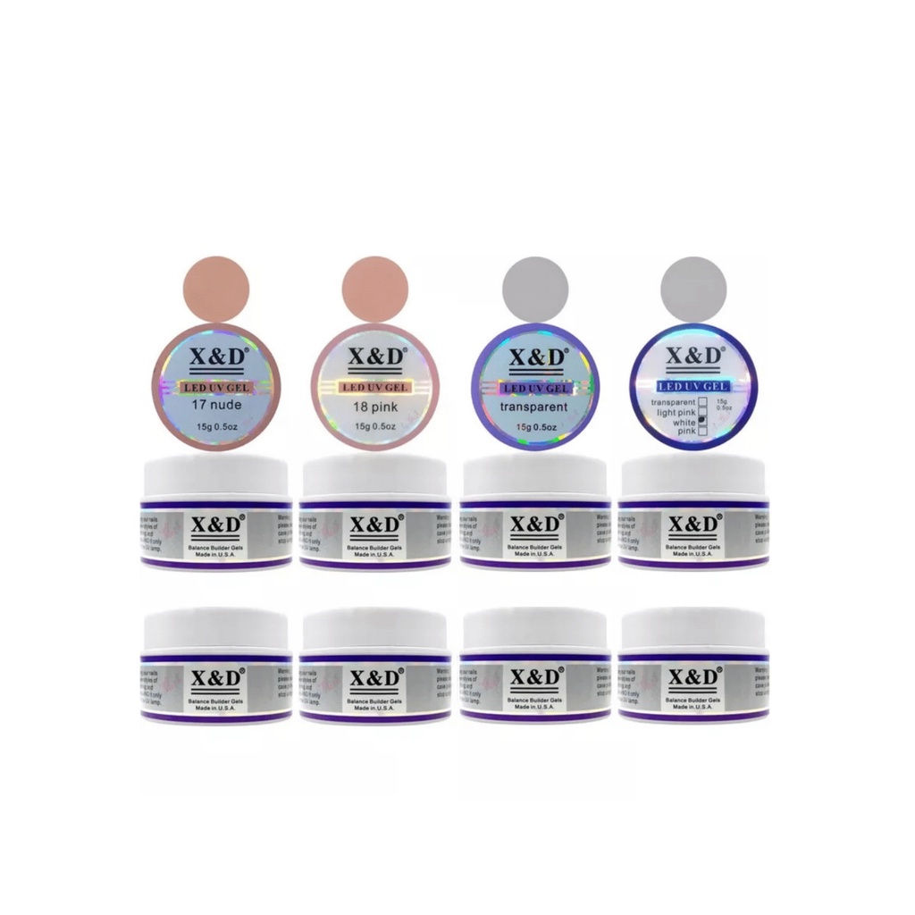 KIT 8 Gel 15g X&D Para Unhas Gel fibra XED XD Profissional Alongamento