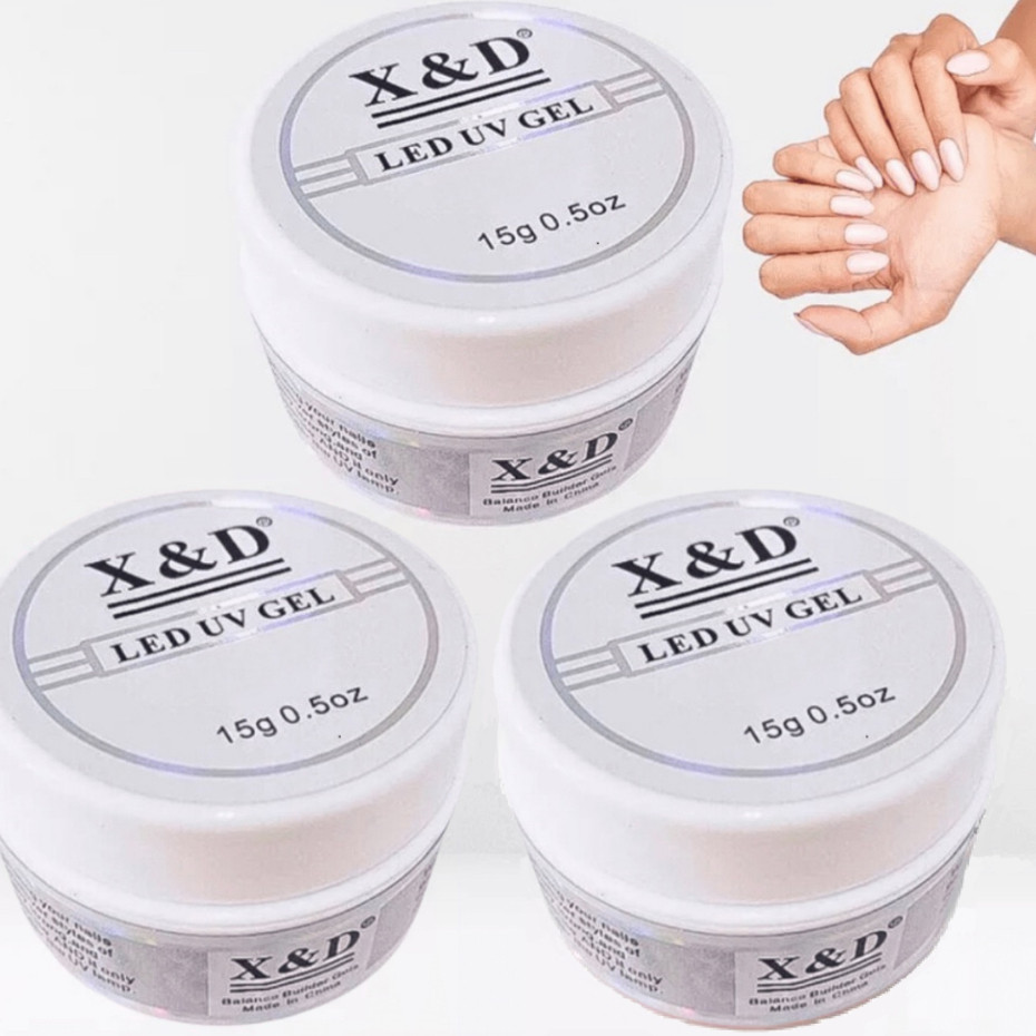 KIT 3 Gel 15g X&D Para Unhas Gel fibra XED XD Profissional Alongamento