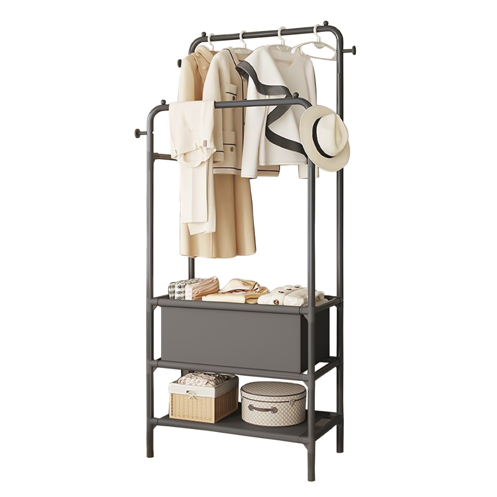 Arara de Roupa Cabideiro Com 3 Prateleiras e 2 Ganchos para Roupas P/Sala de estar