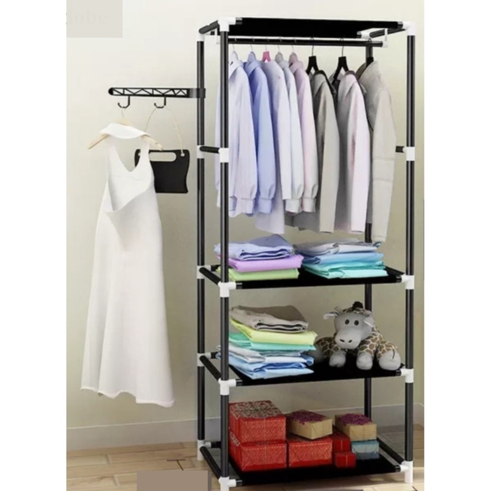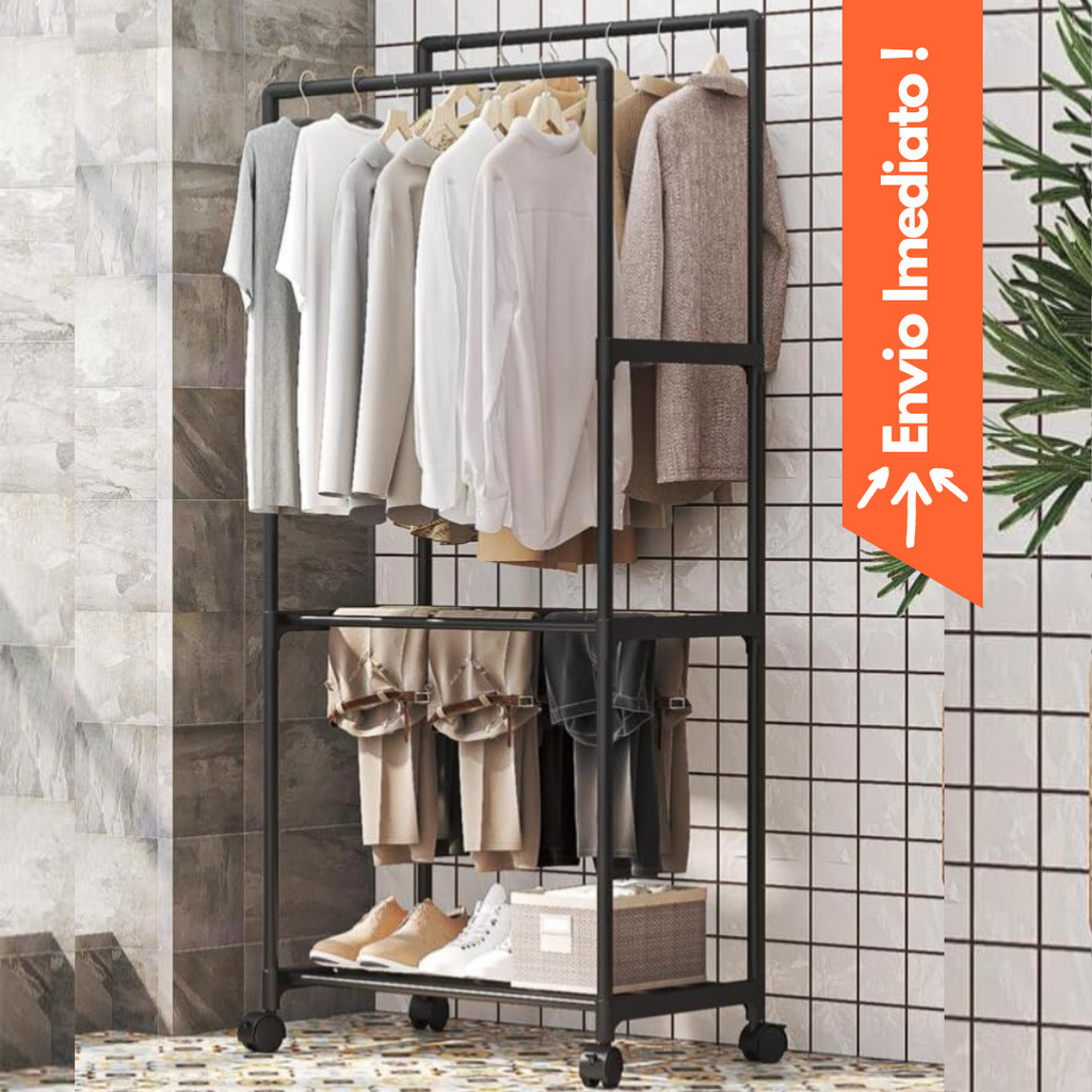 Arara de Roupas Sapateira Cabideiro Desmontável Dupla Com Prateleiras E Rodinhas Organizador de Sapatos