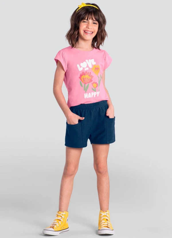 Carinhoso - Conjunto Flores com Jeans Menina Rosa