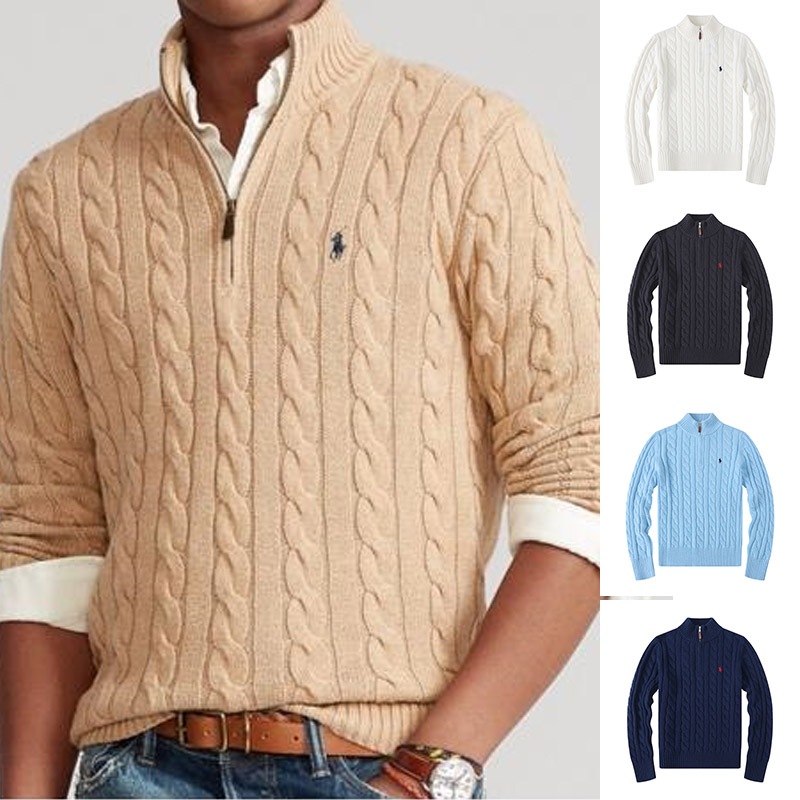 2024 Camisola masculina de algodão puro Paul Paul Malha RL Half High Zipper Polo Sweater Outono Inverno Cor Sólida Bordado de manga comprida Pony Business Casual Sports Thermal Top
