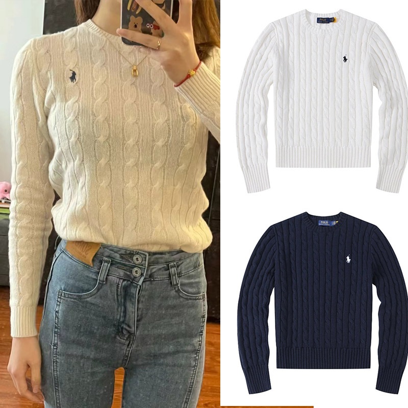 2024 Paul Sweater Ladies Polo Manga Longa Camisola de Pescoço Redondo Rosqueada RL Primavera Outono Bordado Pony Label Business Casual Sports Thermal Top