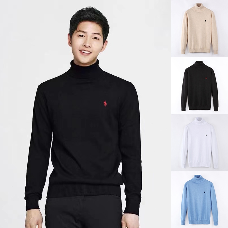 2024 Camisola masculina de algodão puro puro puro Paul Tricotada Half High Zipper Polo Sweater Outono Inverno Cor Sólida Rosqueada Manga Longa RL Camisola Pony Sweater Bordada
