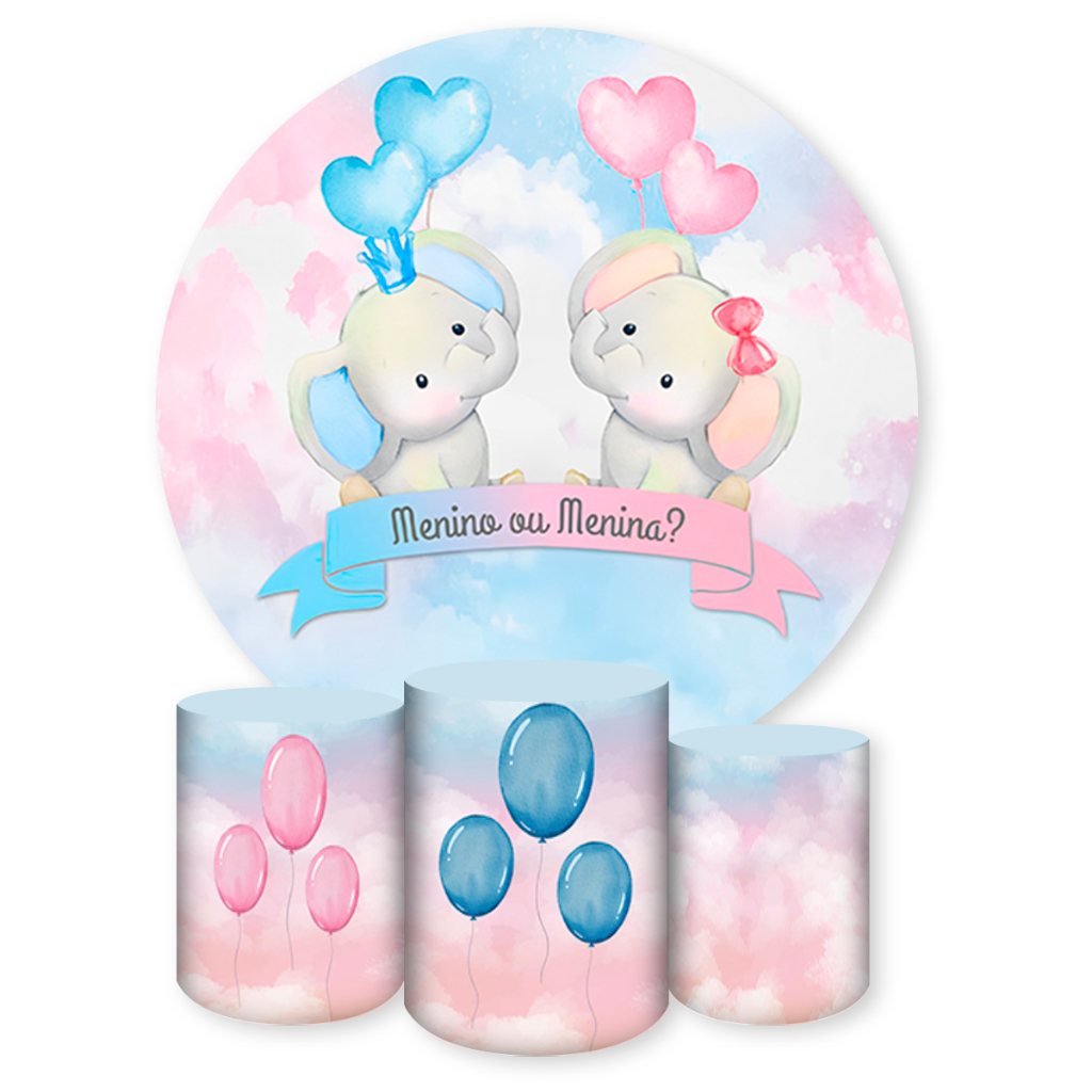 Capa Painel Redondo E Capas De Cilindro Sublimados Tema Chá Revelação
