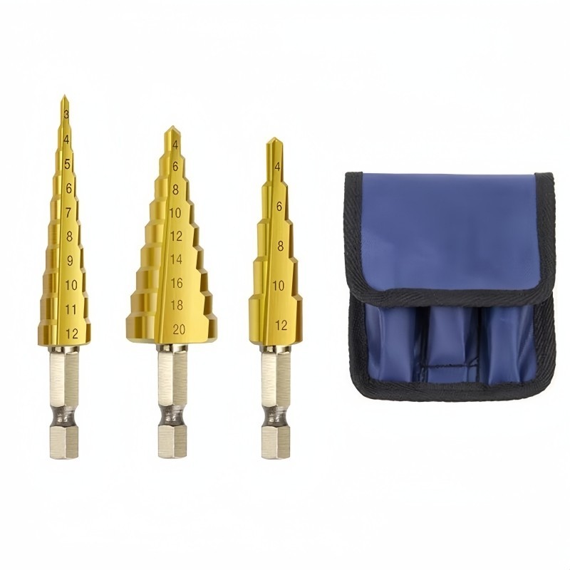 Kit 3 Brocas Escalonada Titânio 3-12 4-12 -20mm Jogo Broca Hexagonais Cônicas Bits Métricos Cônicos