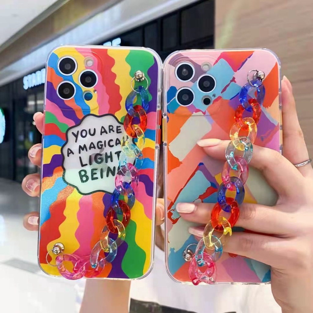 Capinha De Celular Transparente Em Colorida Com Corrente Para XiaoMi Redmi Note 9S