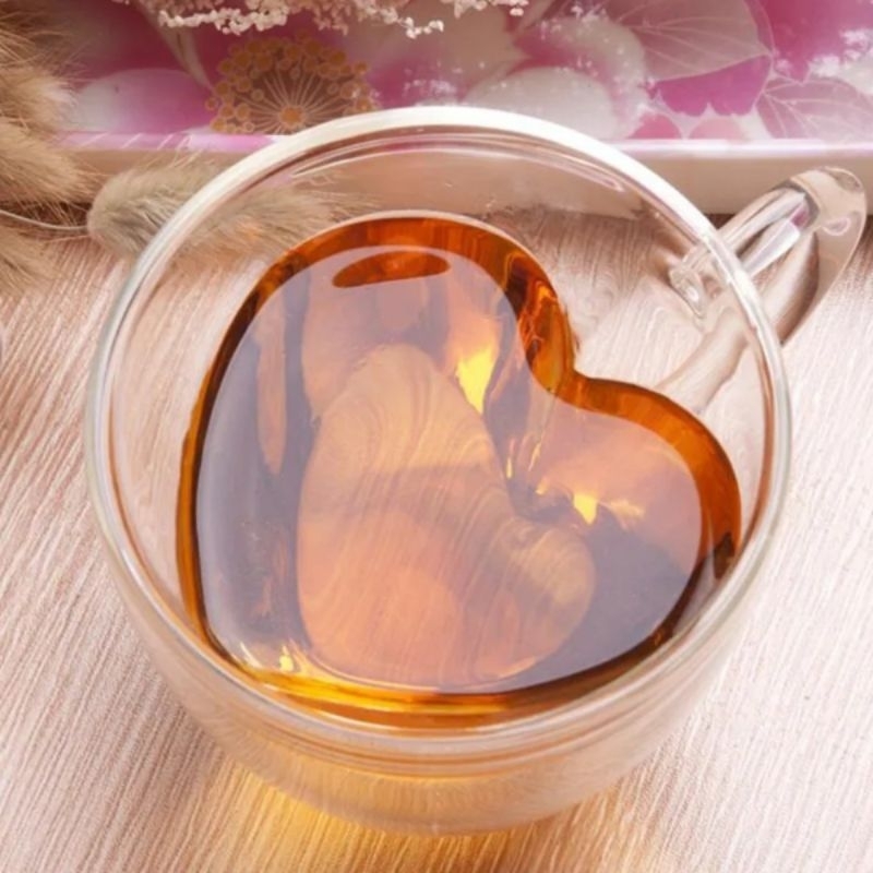 Kit 2 Xícaras Coração Vidro Duplo Caneca Parede Dupla Café 150 ml A Pronta Entrega
