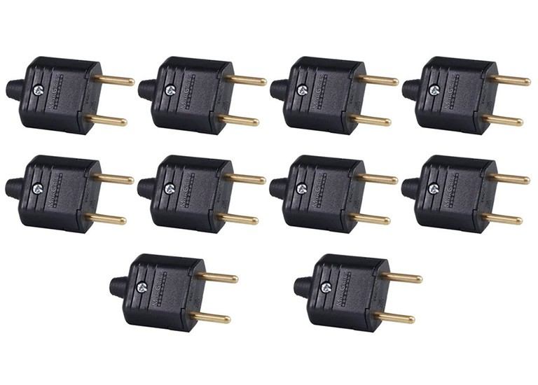 Plugue Macho Preto 2 Pinos Maciços Radial Kit com 10 Peças