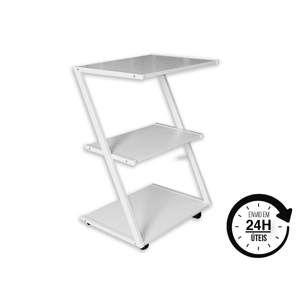 Carrinho Auxiliar Organizador em Z Metálico 3 Prateleiras salão clinica cabelereiro estética multiuso