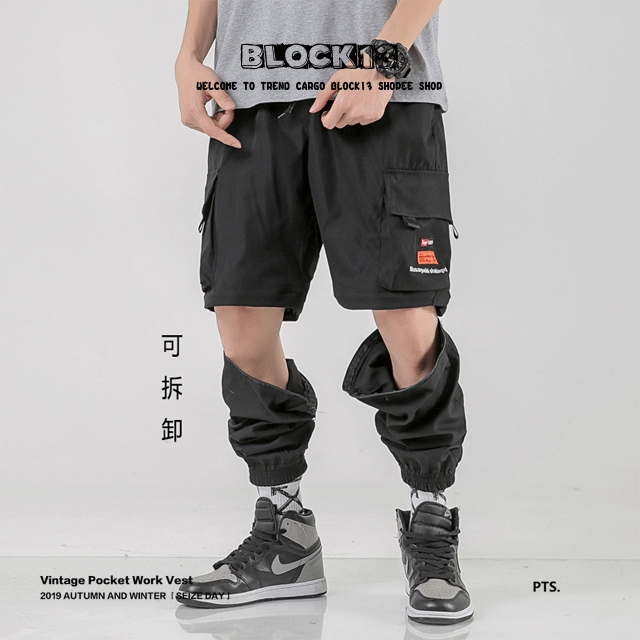Calças de bolso grandes e escuras de bolso soltas Calças masculinas de rua Hip-Hop High Street Pernas retas Encolhimento de macacão estilo funcional Homens de macacão