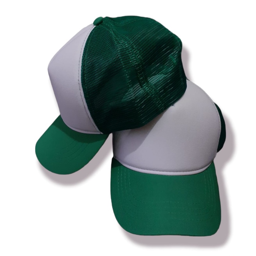 Boné Trucker Liso Verde E Branco Com Redinha Telinha Aba Curva