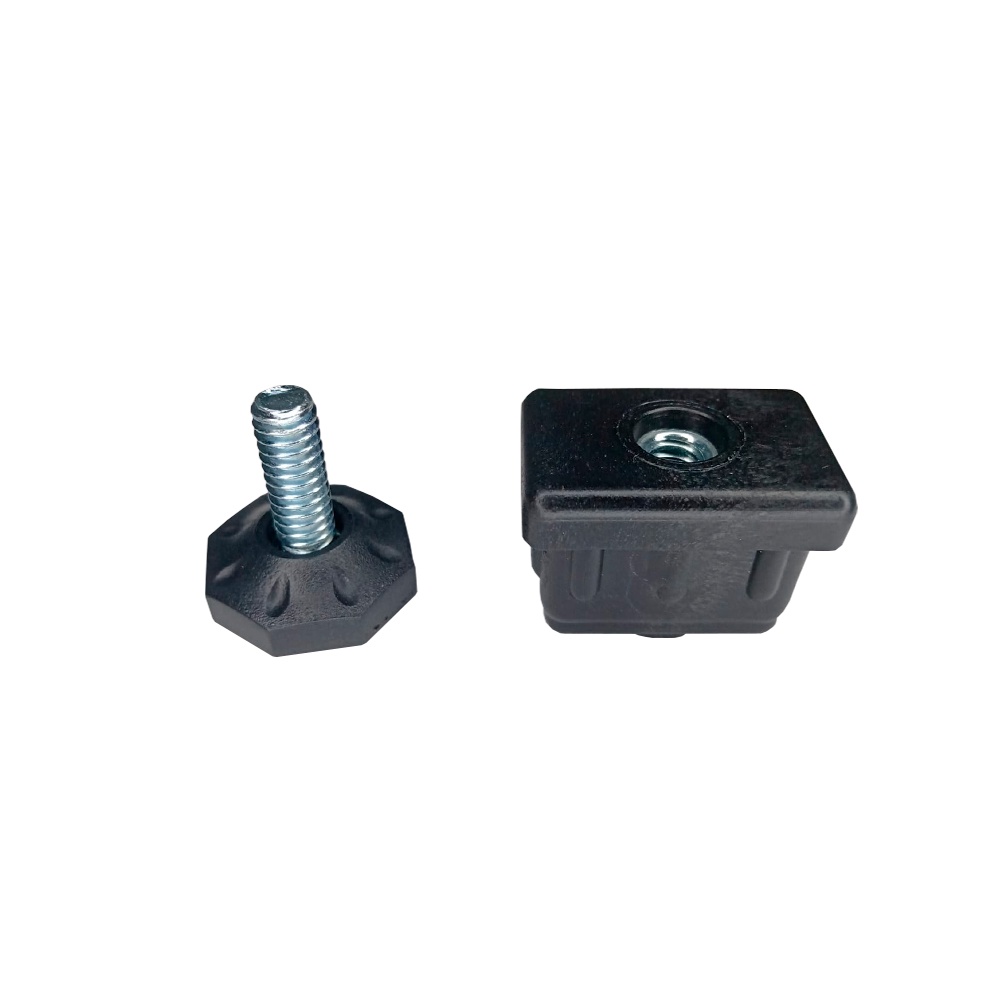 4 Ponteira Retangular, Bucha Rosca Aço, 30x20mm e Pé Nivelador