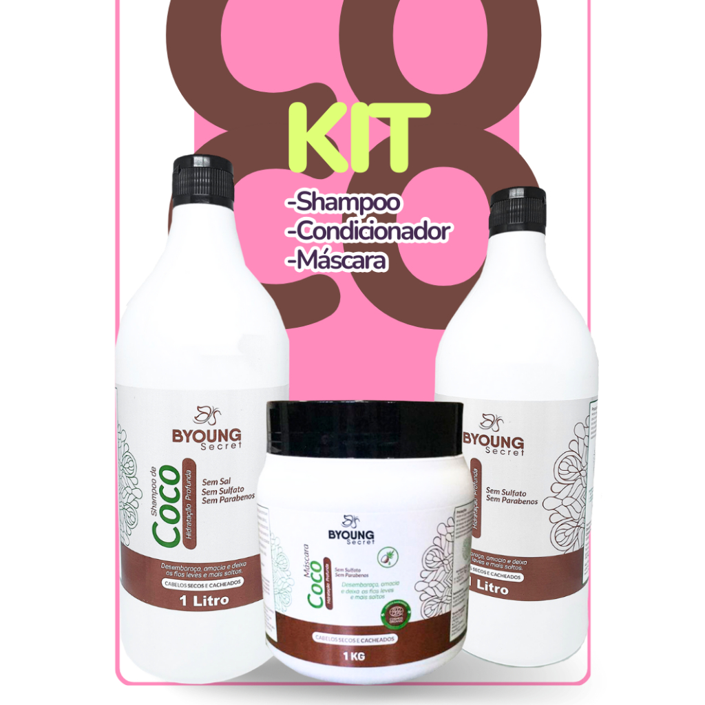 Kit Promocional 1 Litro - Coco Shampoo, Condicionador e Máscara de tratamento 1kg
