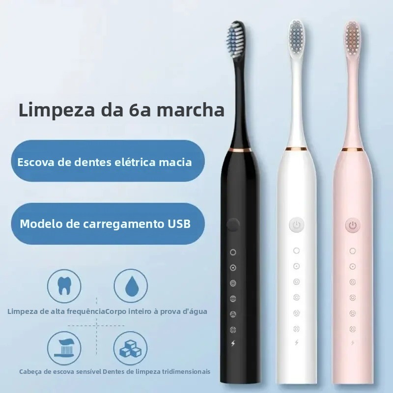 Escova de Dentes Elétrica Recarregável e à Prova d'Água com Tecnologia Ultrassônica para Clareamento Dental