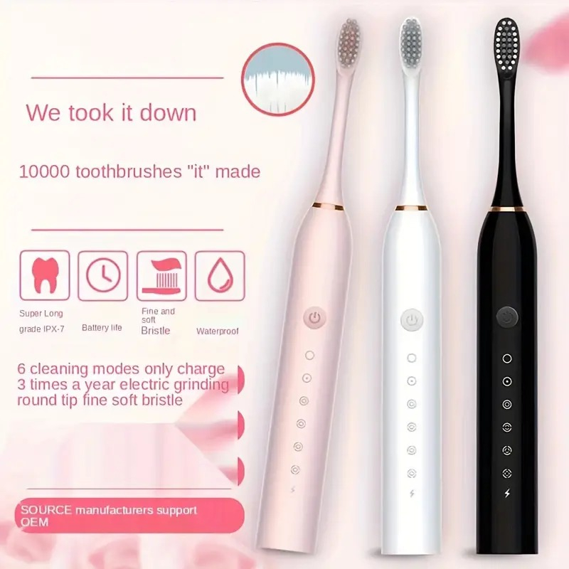 Escova Elétrica De Dentes De 5 Velocidades Substituição Automática Sonic Recarregável