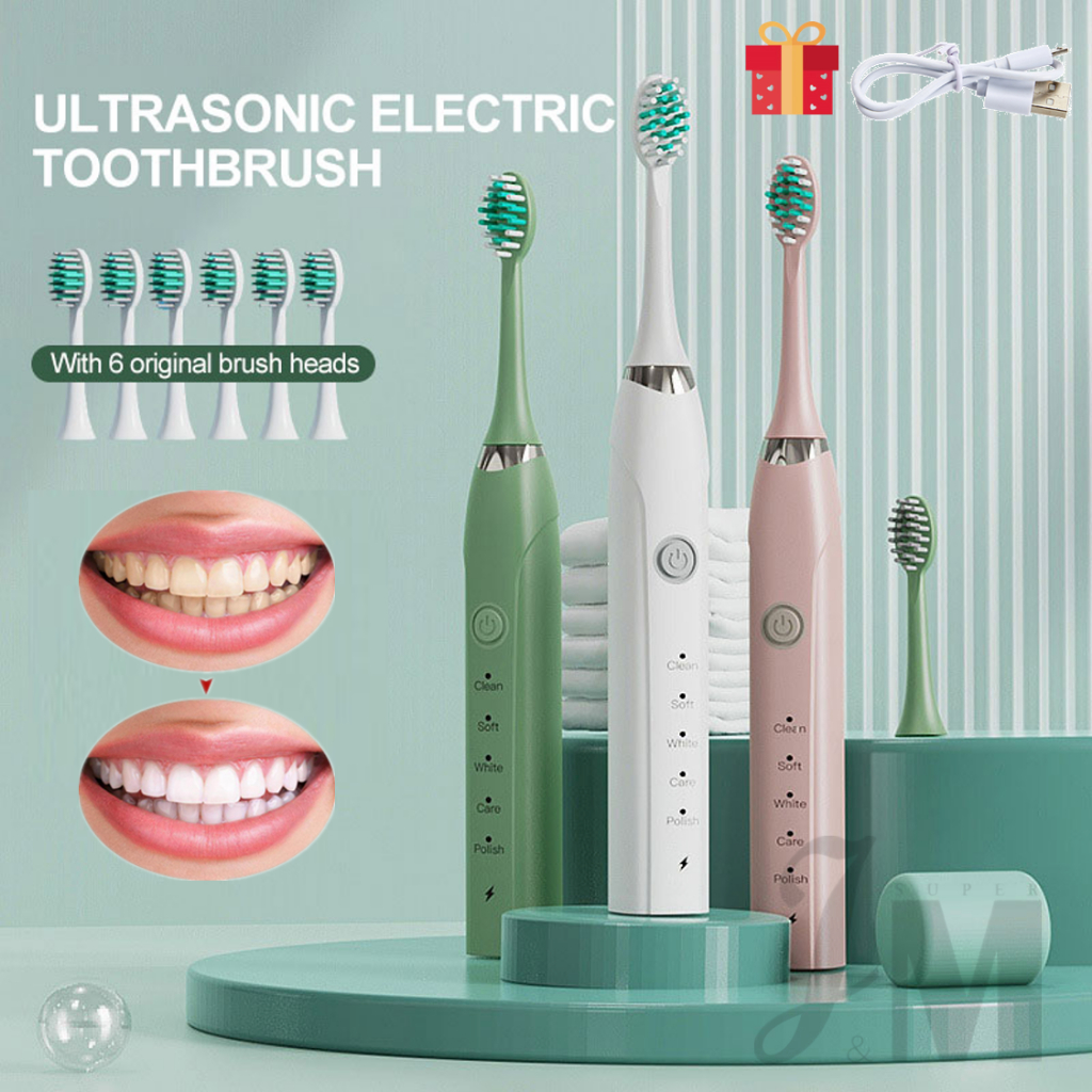 Escova De Dentes Elétrica Ultrassônica Recarregável Vibração Oral/Ferramenta De Higiene + 5 Cabeças De