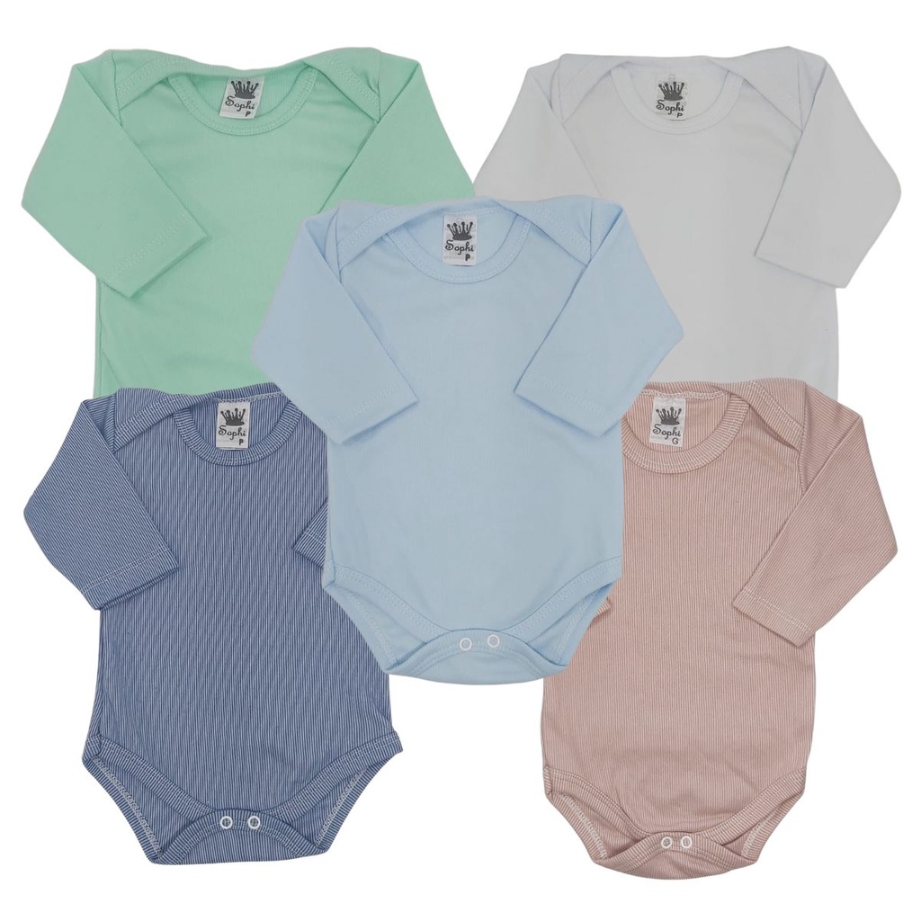 KIT COM 5 -Body Liso Bebê Malha Canelada Manga Longa - Várias Cores- FABRICAÇÃO PRÓPRIA