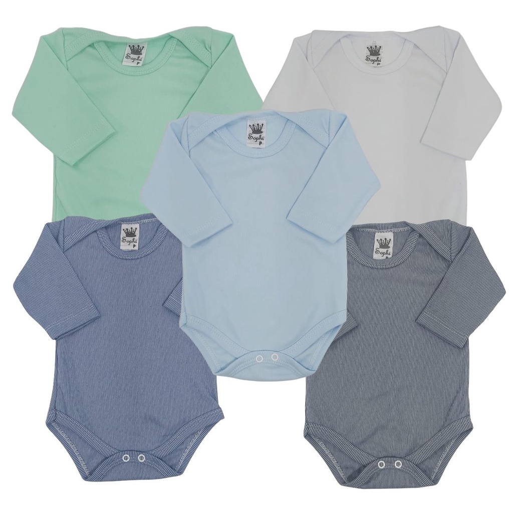Promoção Kit 5 Body Manga Longa Bebê Malha Estampado Algodão Menino Menina Tamanho Recém Nascido ao 3
