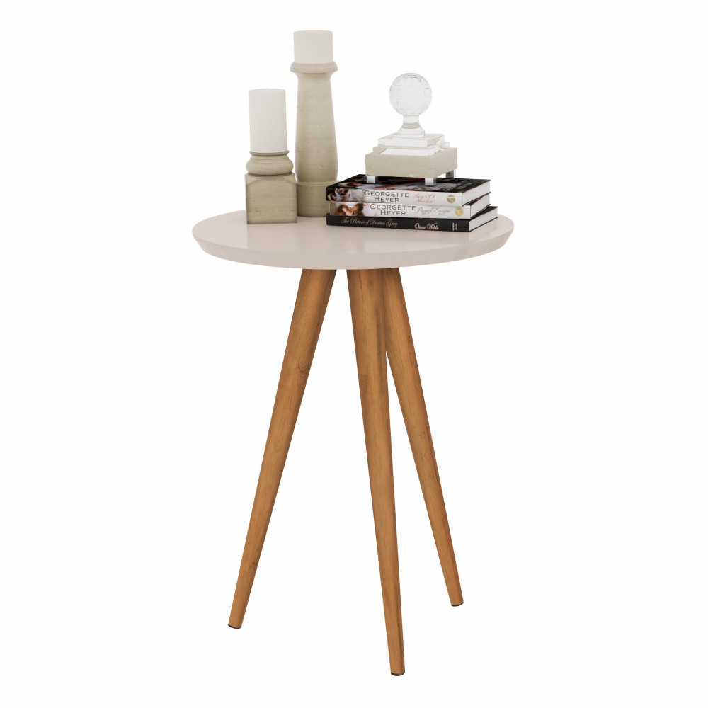 Mesa Apoio e Lateral Pés Palito Retro Redonda Decorativo Canto Sala Off White-Freijó