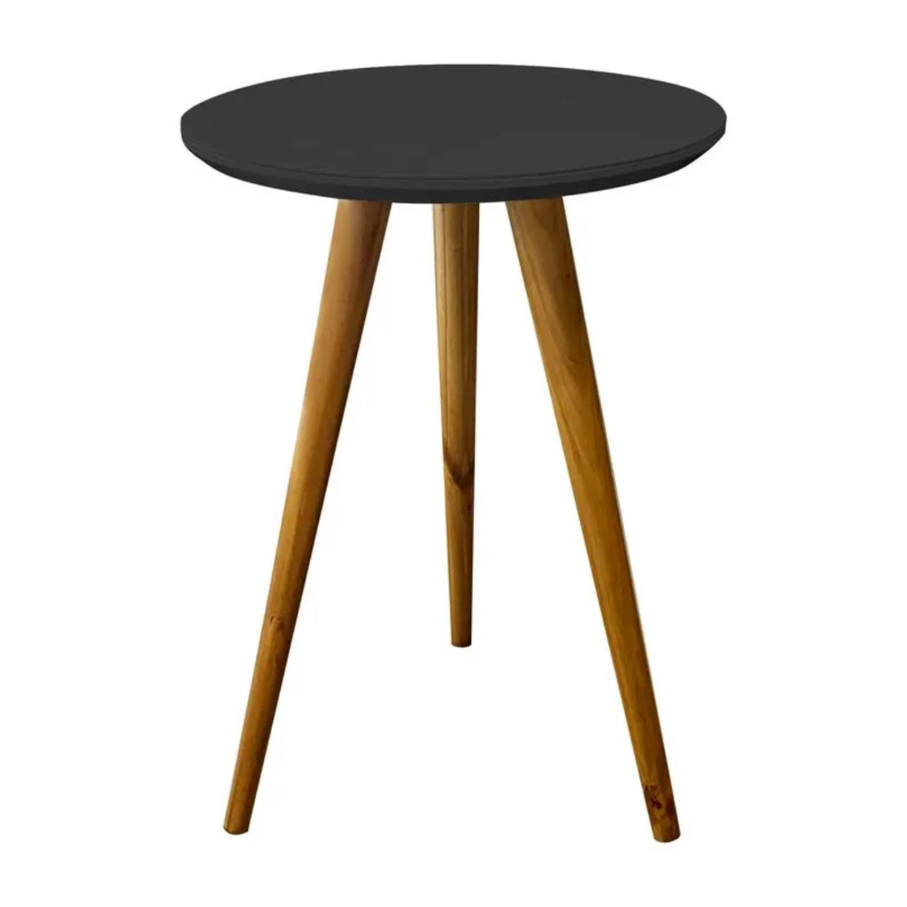 Mesa de Apoio / Lateral Retrô Redonda com Pés Palito Decoração sem uso de ferramentas PRETA