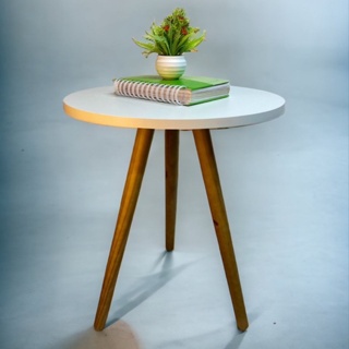 Mesa de Apoio / Lateral Retrô Redonda com Pés Palito Decoração sem uso de ferramentas BRANCA
