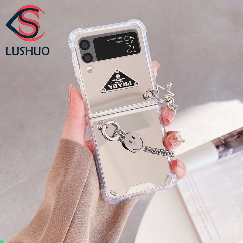 LUSHUO Caixa Telefônica Para Samsung Galaxy Z Flip 6 5 4 3 Com Alças Flip3 ZFlip3 ZFlip 3 Flip4 ZFlip4 ZFlip5 ZFlip6