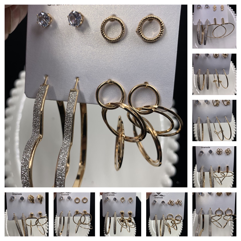 6 Pares De Brincos E Acessórios Criativos Simples Moderno Exagerada Banhado a Ouro 18k Prata 925